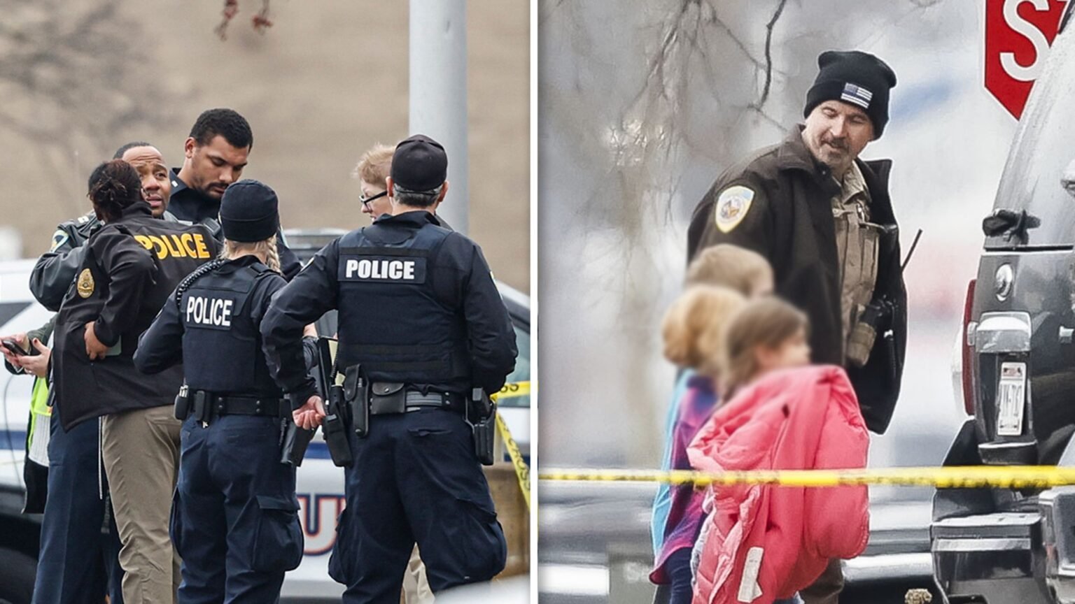 Police at the scene of the shooting at the Shutterstock 5 school in Wisconsin