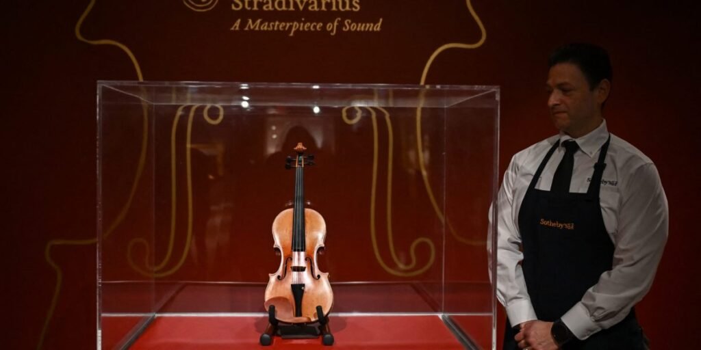 Violin Violamby is on display at a preview of Viotheby, in New York City, on February 3, 2025. 1714 instrument, XIX. Century violin in Joachim, the acquisition of $ 12 and 18 million is expected in the period of the Auction 7th of February 2025.