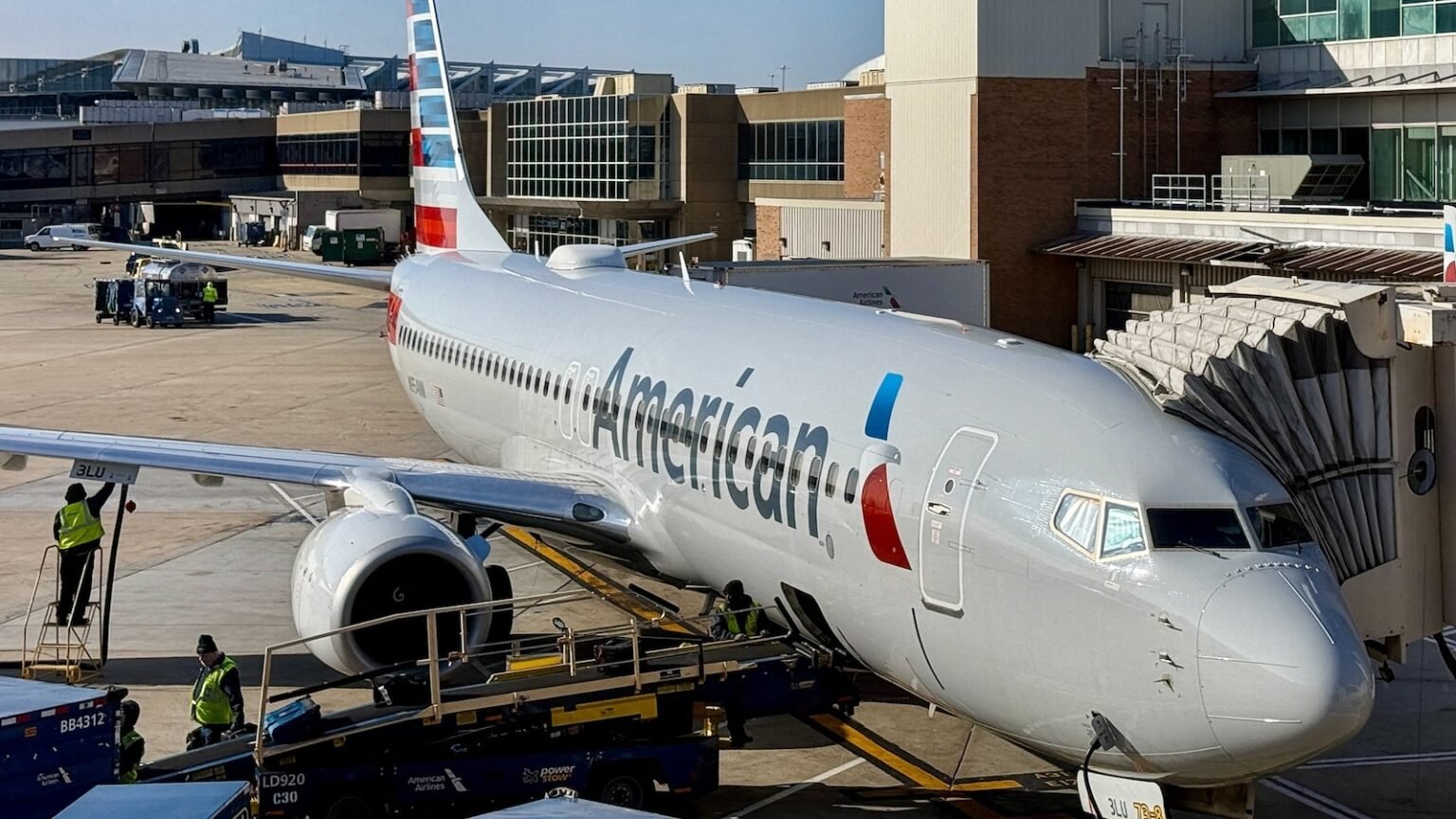 An American Airlines passenger jet is parked at a gate at Philadelphia International Airport in Philadelphia, Pennsylvania, on December 13, 2024.