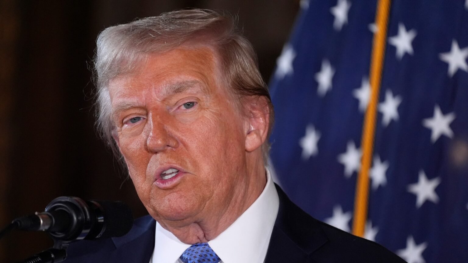 President-elect Donald Trump delivers remarks at Mar-a-Lagon in Palm Beach, Florida, on December 16, 2024.