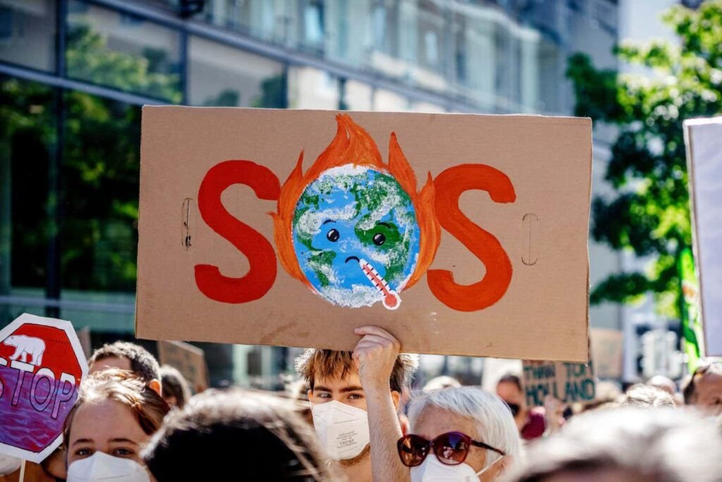 2GNHAFF poster: SOS. On September 24, 2021, 29,000 people gathered in Munich for a global climate strike before the federal elections, to send a clear signal for climate protection and environmental protection, to meet the Paris Agreement and the 1.5 degree target and to put pressure on voters and voters. implementing parties * On September 24, 2021, 29,000 people joined the global climate strike two days before the German Parliamentary Elections in Munich, Germany. They protested to show a clear message of climate and environmental protection, in support of the Paris Agreement and the 1.5 degree target, and to move forward.