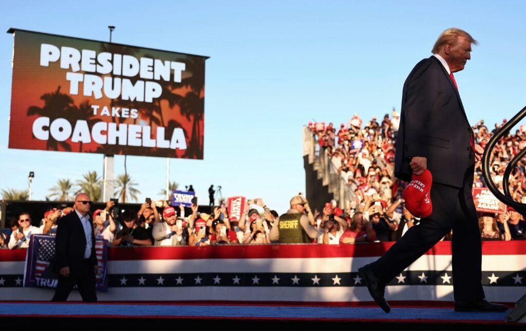 Donald Trump takes the stage at a campaign rally on October 12, 2024 in Coachella, California.