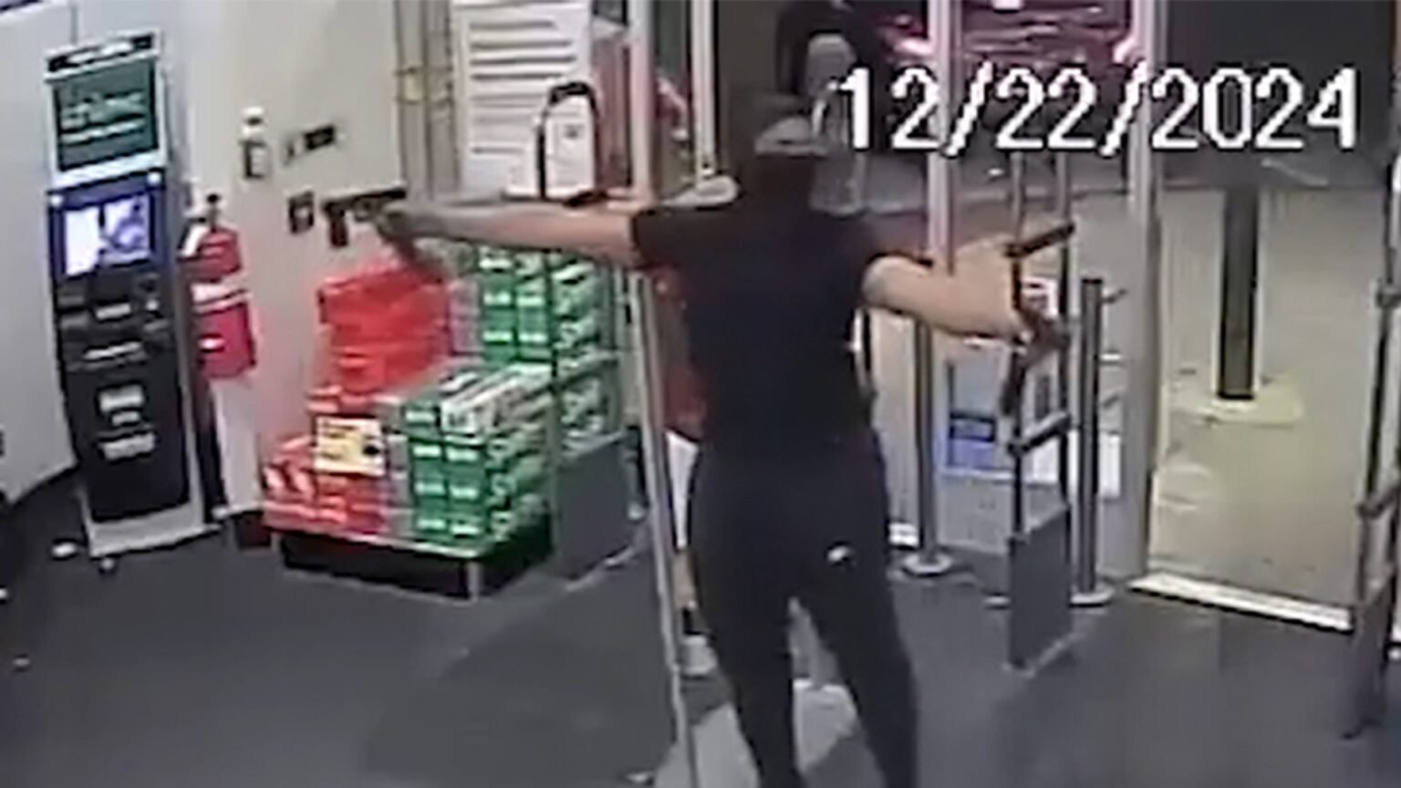 Memphis PD released surveillance footage Tuesday showing the thief walking inside the store with two machine guns, one in each hand.