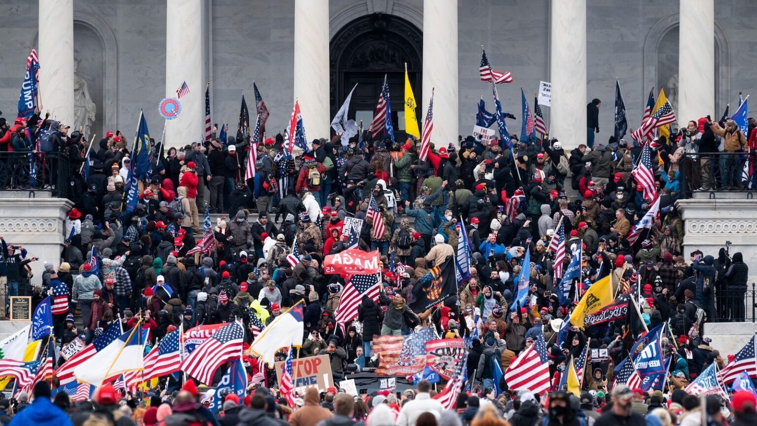 Trump supporters take the steps of the Capitol as Congress works to verify electoral college votes, Jan. 6, 2021.