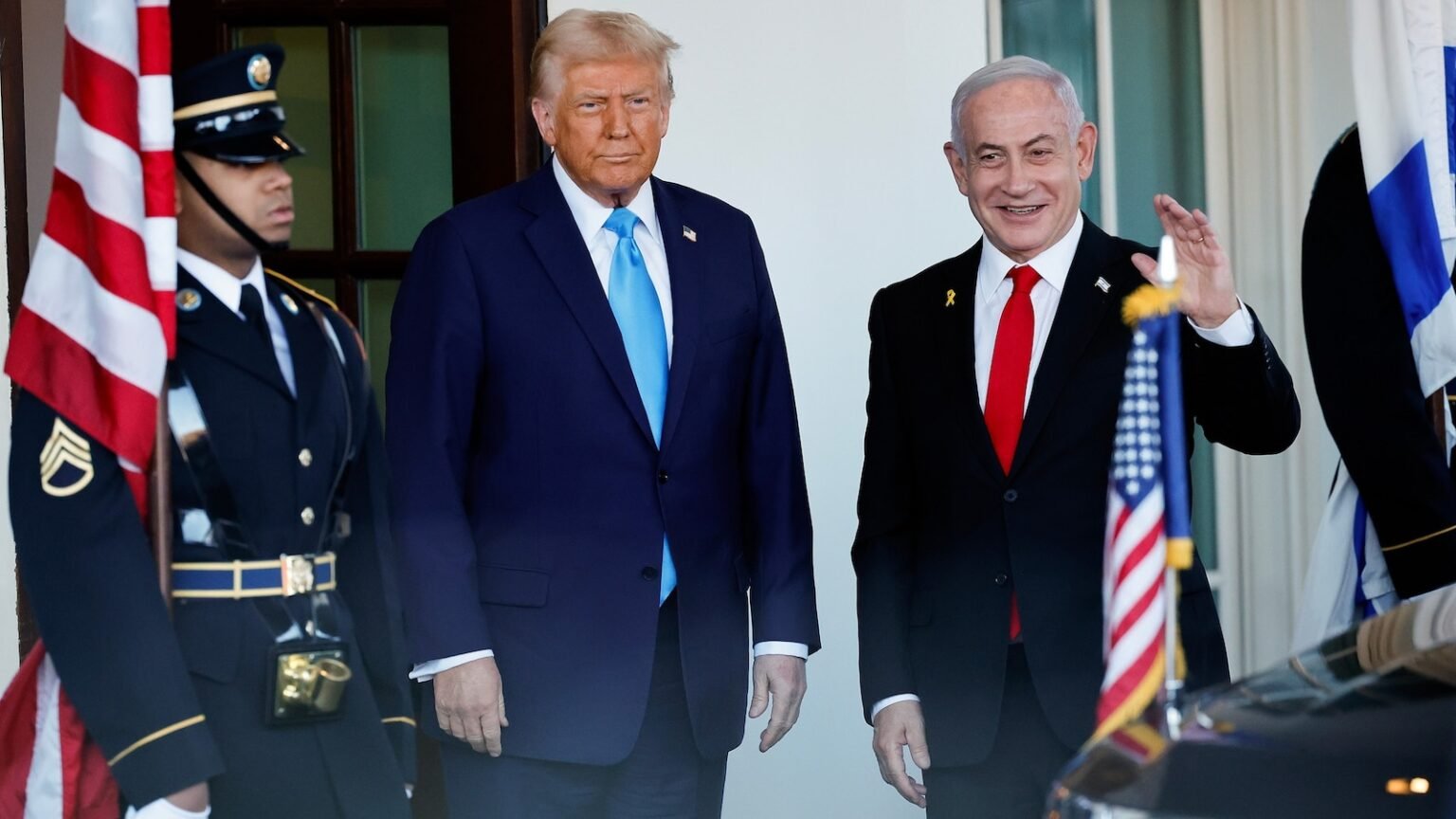 President Donald Trump greets Benjamin Netanyahu Prime Minister Israel, February 4, 2025 February 4th.