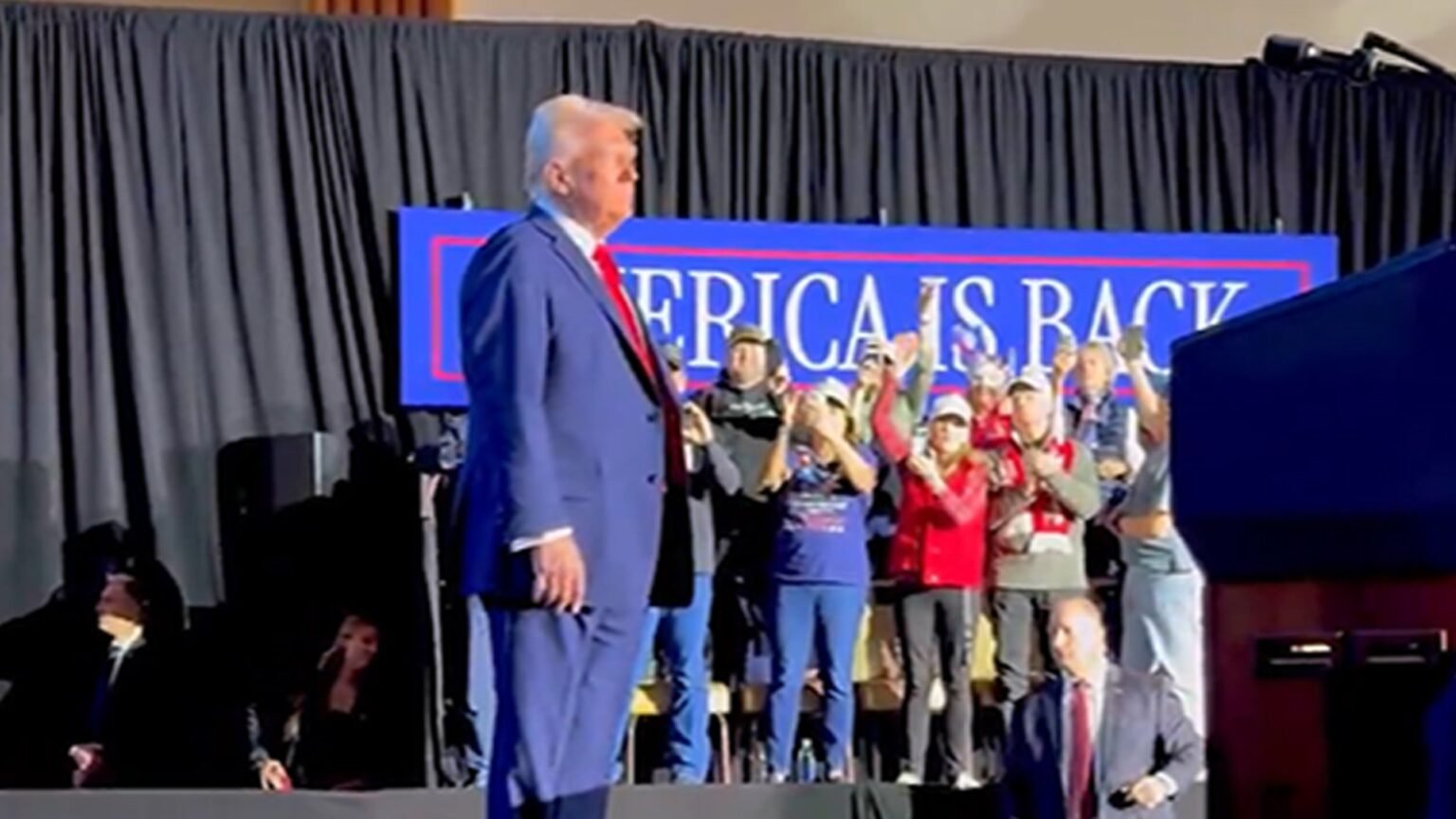 Check the video … Ton of smiling workers who want to shower DJT’s hand and secret service makes a great job that crowds closes in DJT.