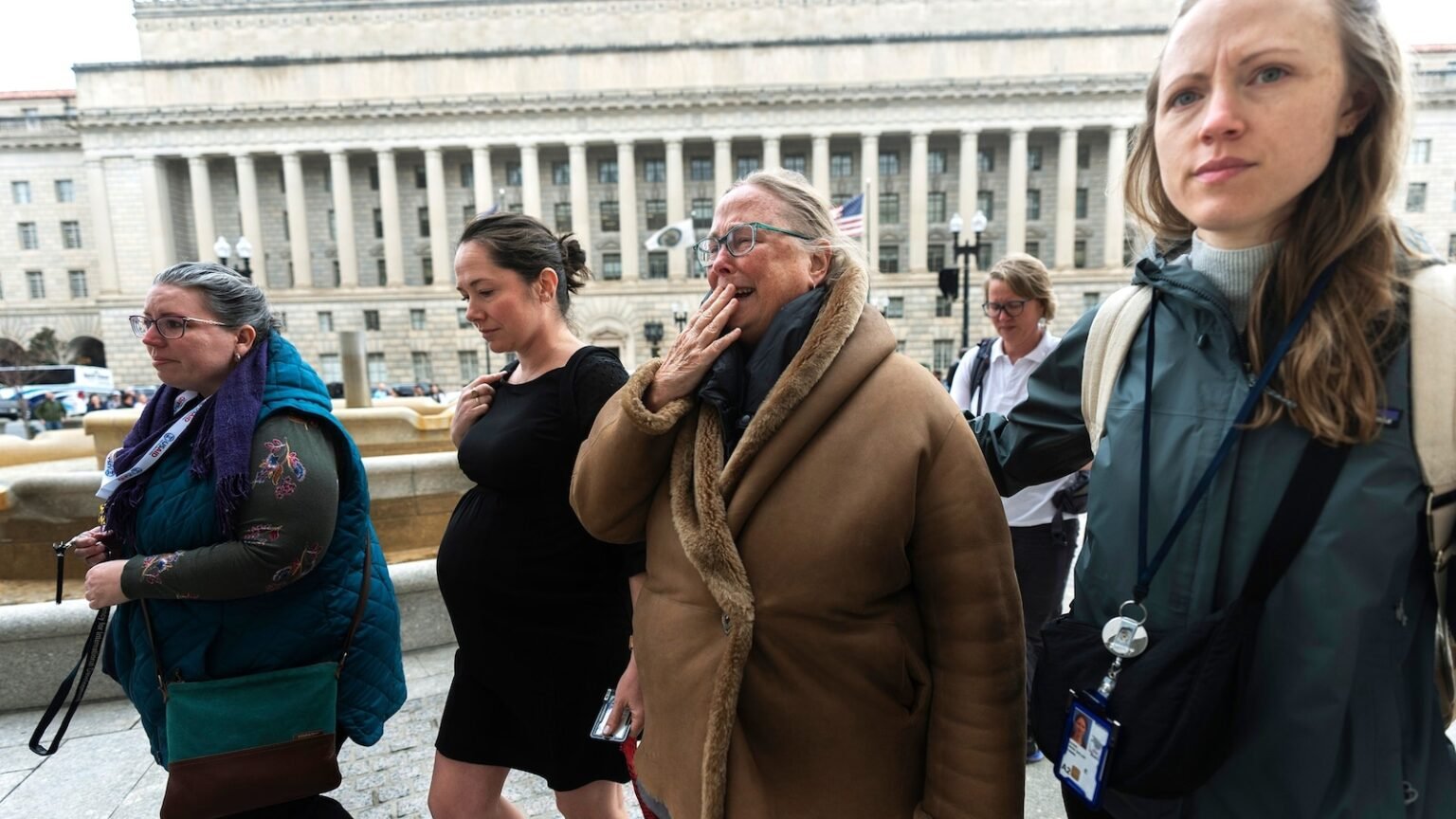 Lucy Mize, right, international development agency (USAID) for the official health of 31 years, he cries while walking with USAID employees in Washington in Washington.