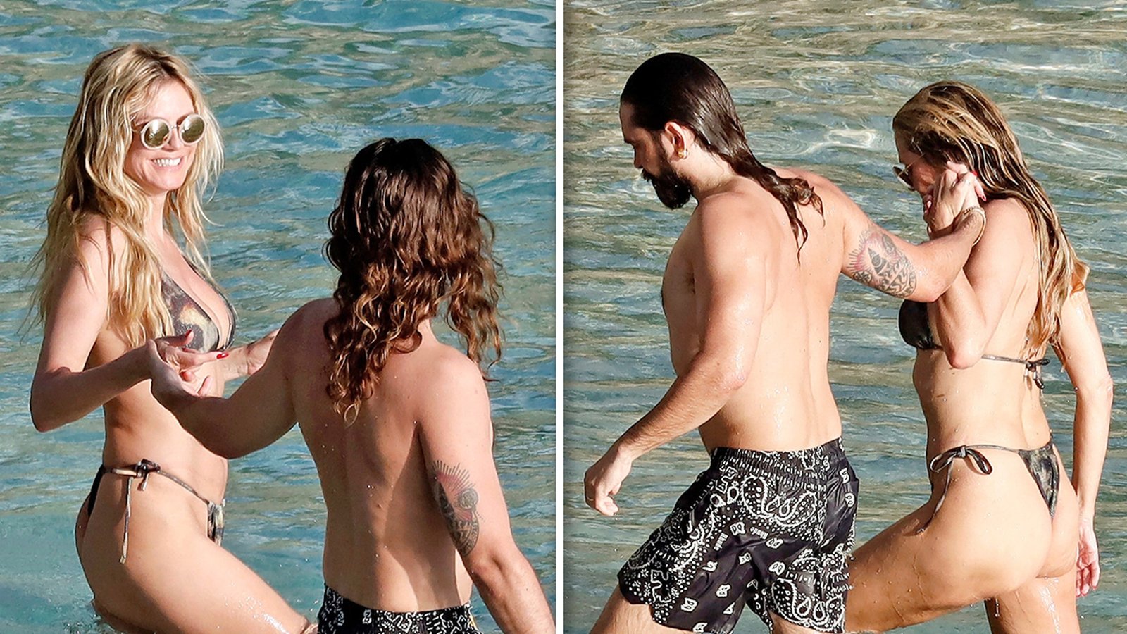 Heidi Klum was back in beach mode in St. Barts, showing off her incredible figure in a bikini with her husband. From Tom Cowle beside him.