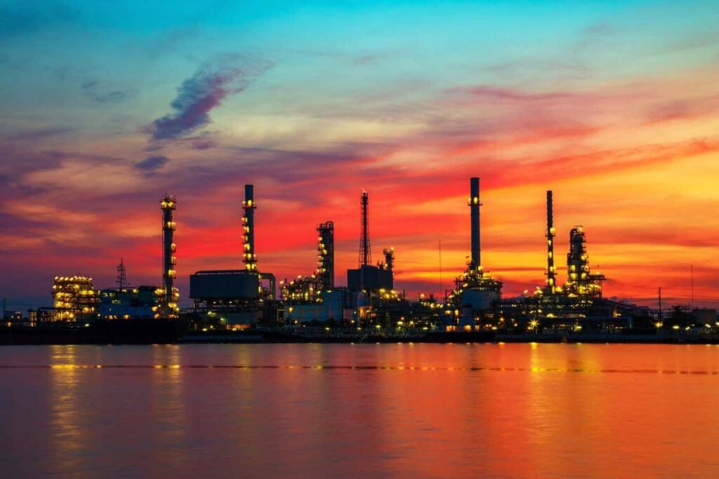 “Fossil fuel companies never accepted the role of the climate in the climate” … dusk oil refinery.