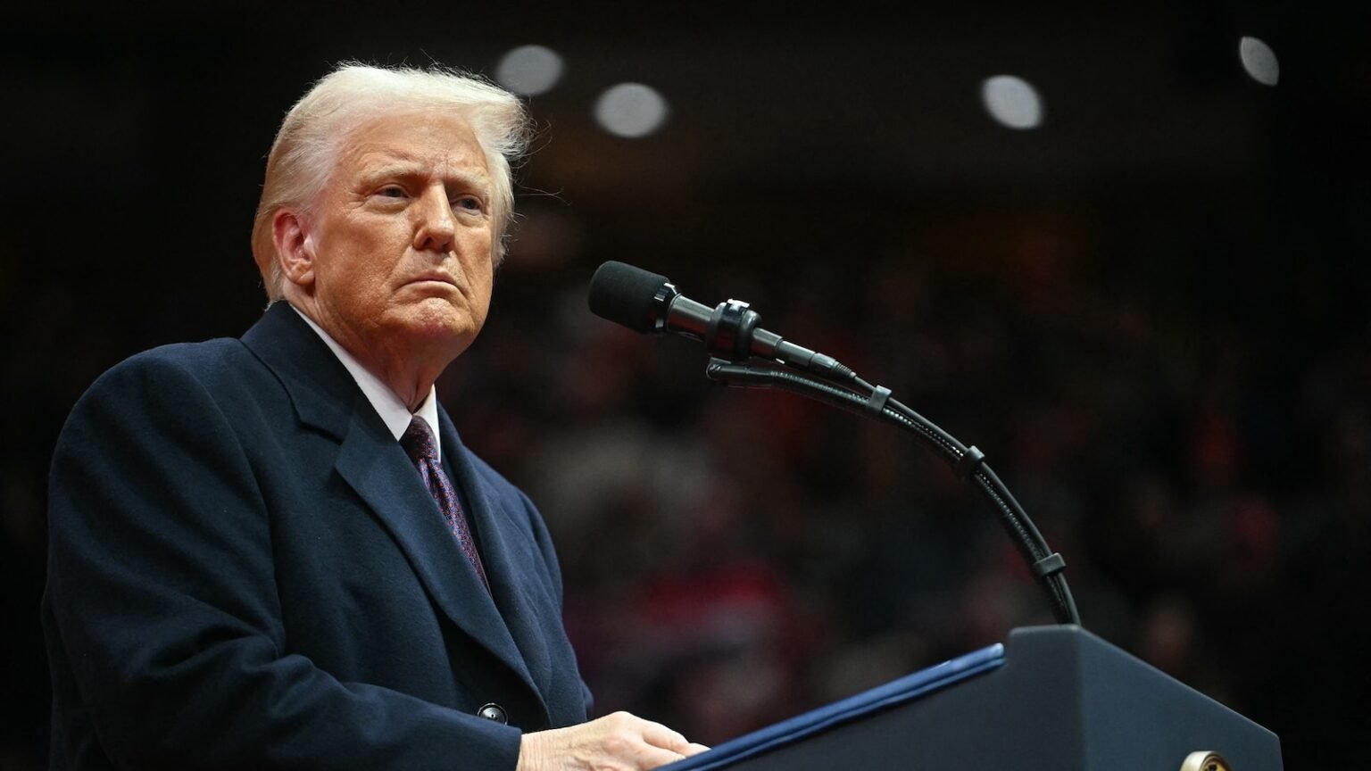 President Donald Trump speaks during the inaugural parade inside Capital One Arena in Washington, DC on January 20, 2025.