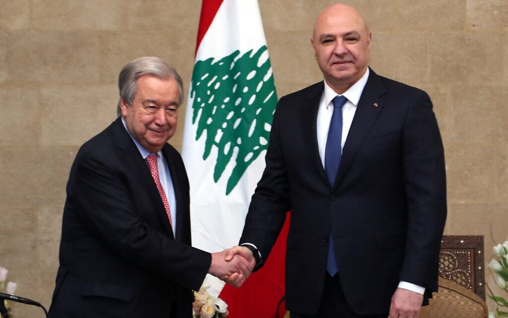 UN chief meets newly elected Joseph Aoun in Beirut, hails ‘new chapter of peace’; Hezbollah chief calls on government to confront Israel over “more than hundreds” of violations