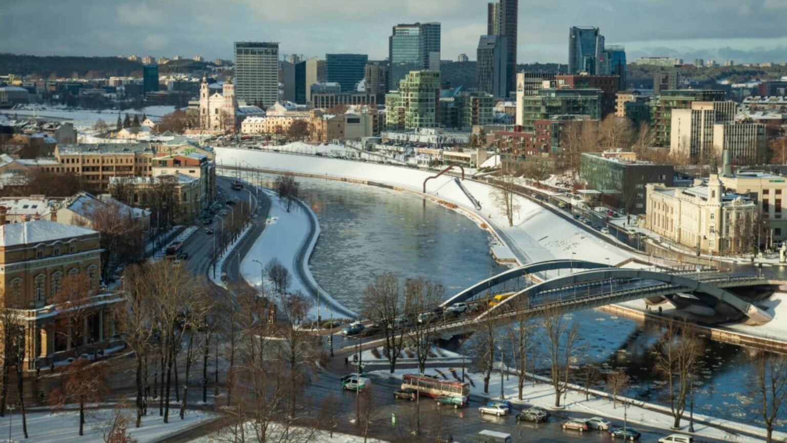 Winter evening in Vilnius, Lithuania.