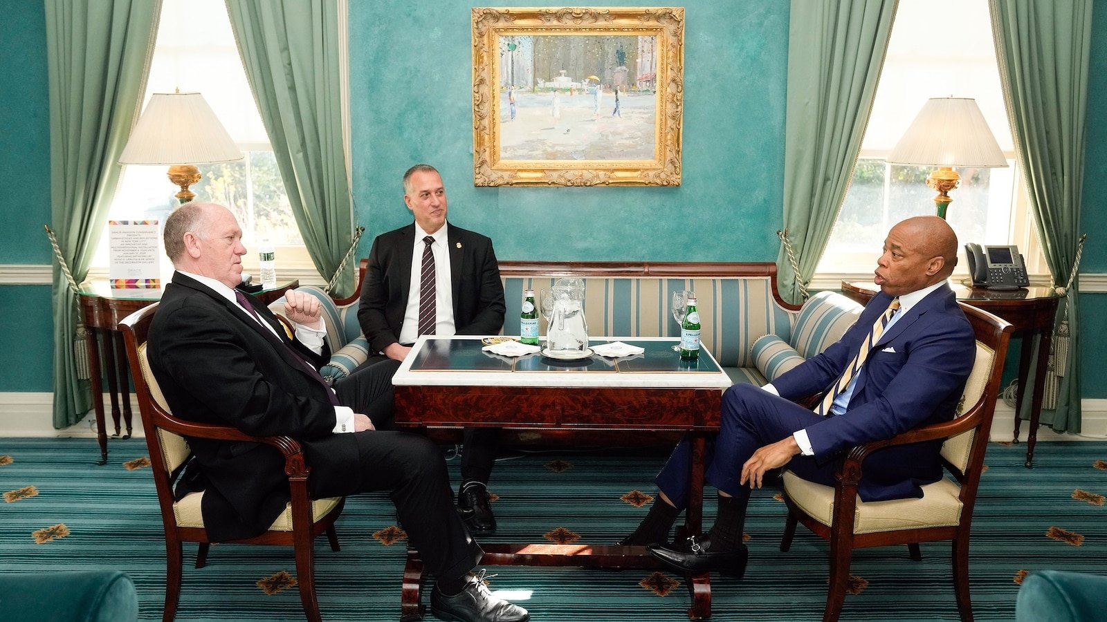 New York City Mayor Eric Adams meets with President-elect Donald Trump’s border tsar Tom Homan and President Joe Biden’s Department of Homeland Security Chairman Kenneth Genalo, in New York, Dec. 12, 2024.