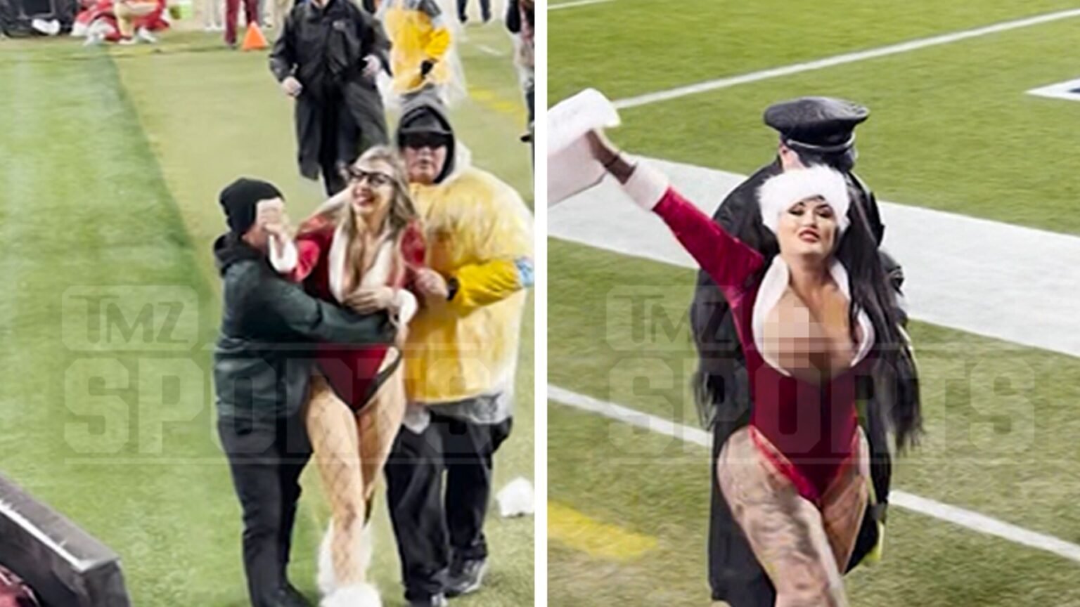 Two models made the 49ers vs. Rams game. jumping the fence and running around the field in little Santa outfits and naturally the stuntman put them on the “naughty” list… cops.