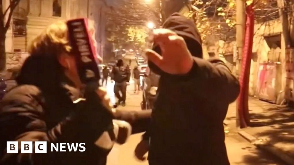 A TV journalist and a cameraman were attacked by masked men while covering pro-European protests in Georgia.