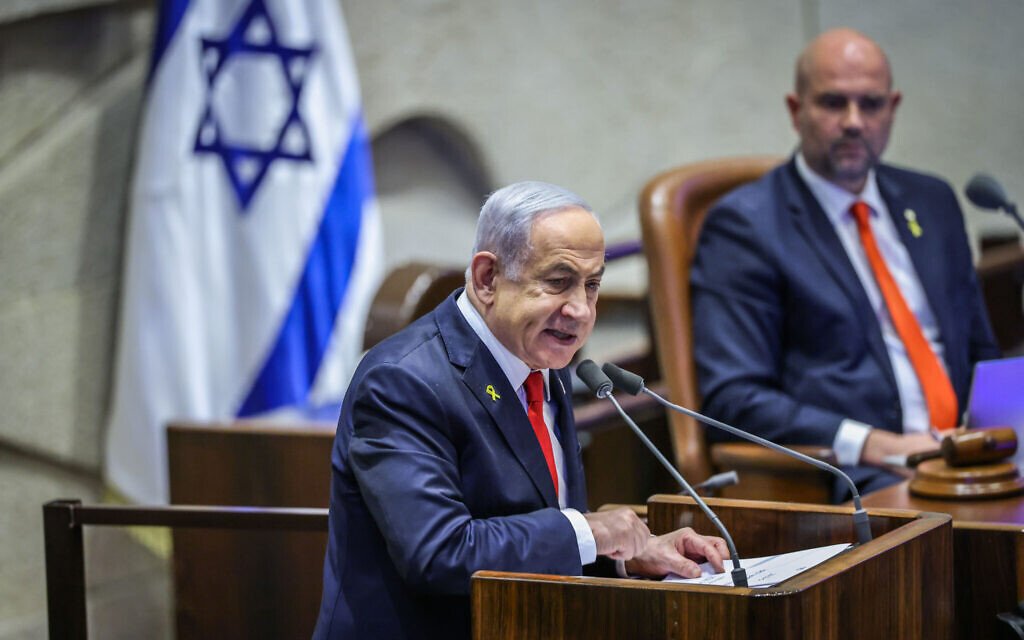 The prime minister confirms that a “specific component” of Iran’s nuclear program was hit in last month’s strikes, in a speech to the Knesset that was repeatedly interrupted by family members of the hostages