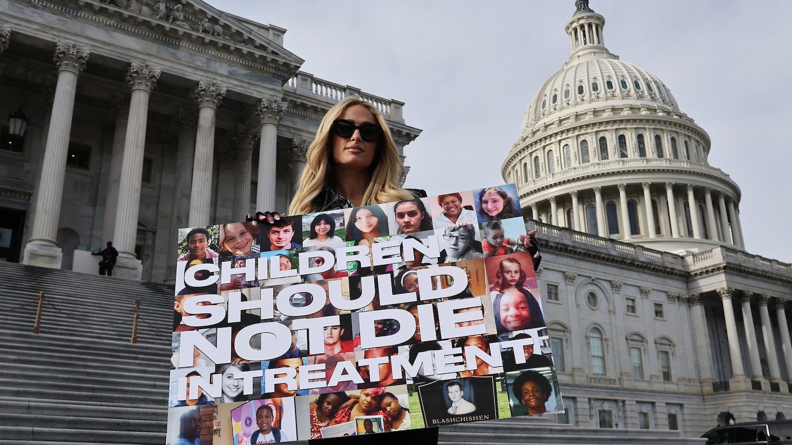Paris Hilton is photographed outside the US Capitol on December 17, 2024 in Washington, D.C., the day the House of Representatives will vote on the Institutional Child Abuse Act.
