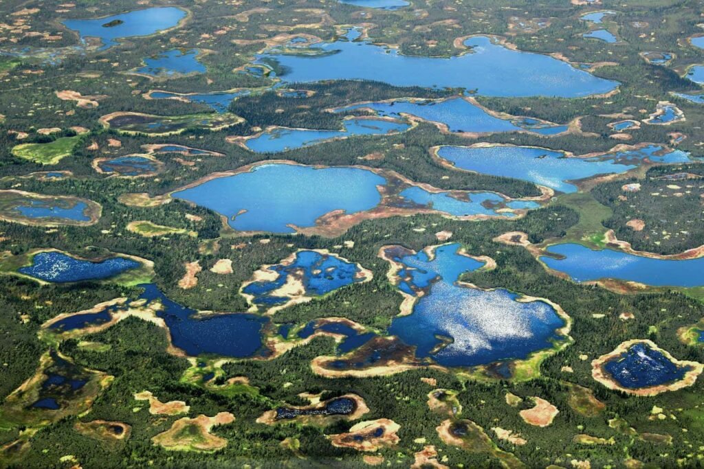 Thermokarst lakes, formed by thawing permafrost, in Alaska