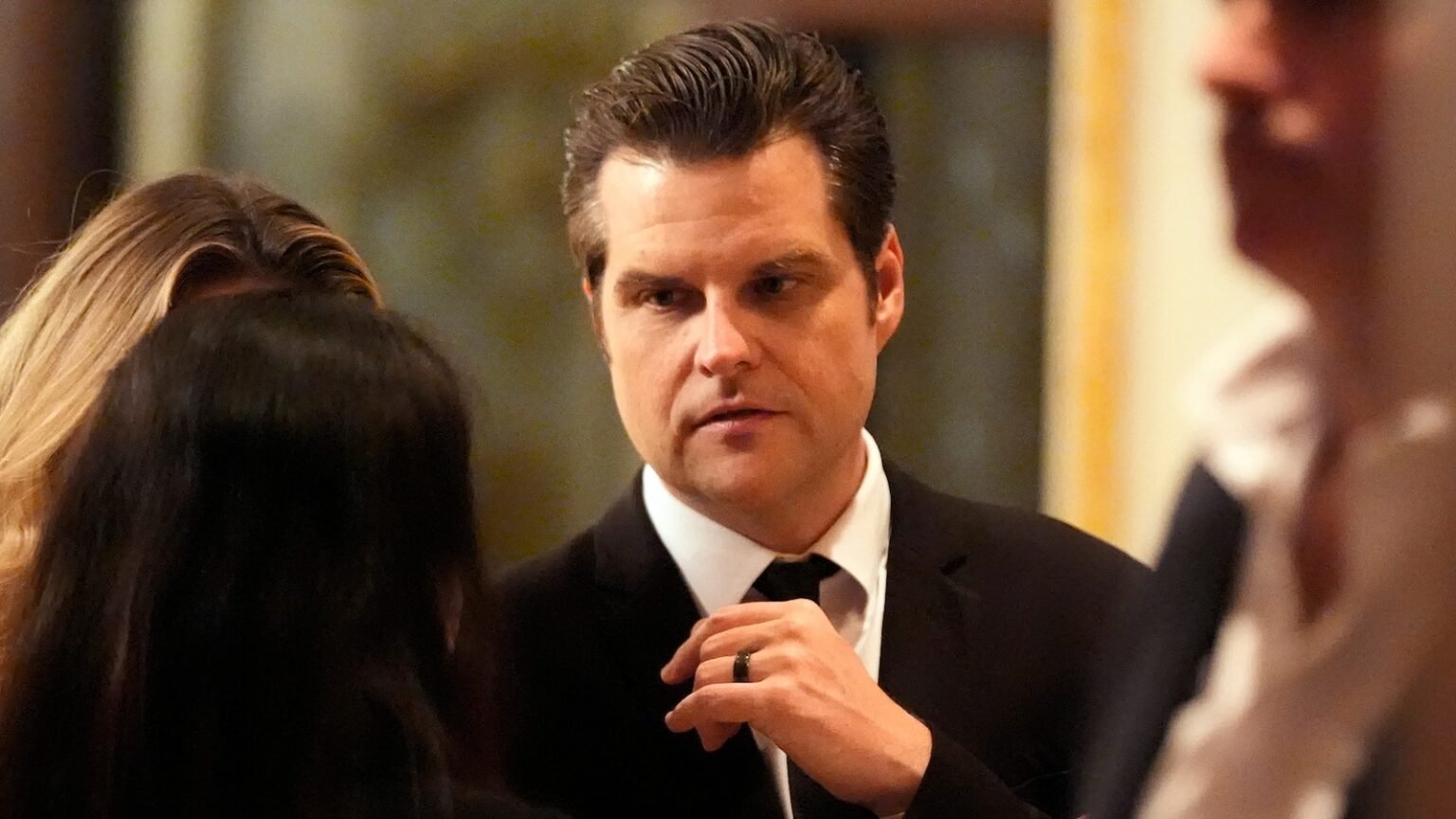 Matt Gaetz arrives before President-elect Donald Trump speaks at an America First Policy Institute gala at Mar-a-Lago on November 14, 2024 in Palm Beach, Florida.