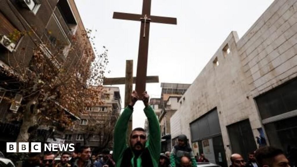 In the Bab Touma neighborhood of Damascus, demonstrators carried a cross and Syrian flags, chanting “we sacrifice our souls for our cross.”