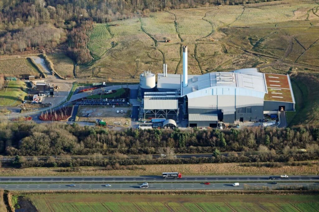 2AFX2PH Aerial view of Allerton Waste Recovery Park on the A1(M) near Harrogate, North Yorkshire, UK