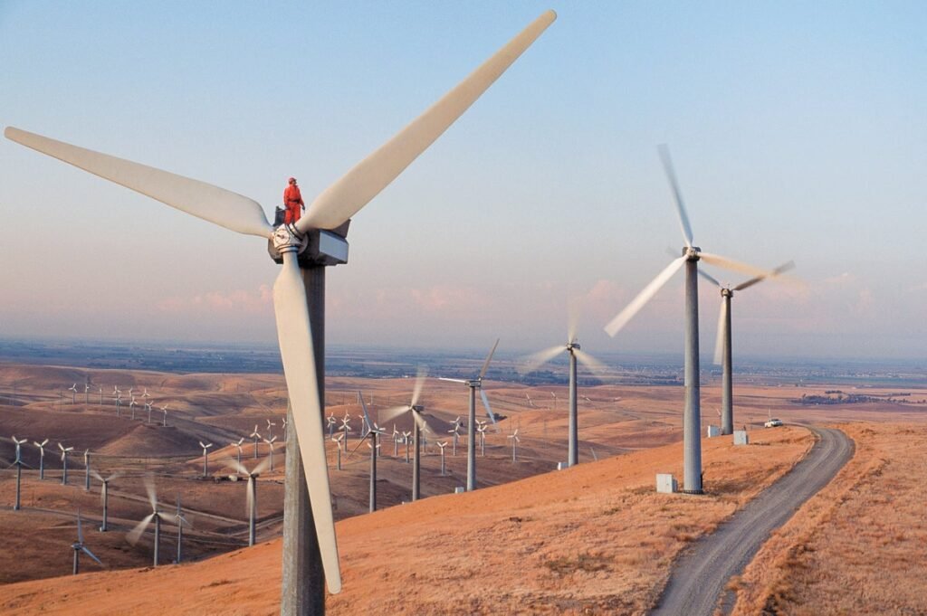 Wind turbines generate renewable energy and are part of the fastest growing electricity generation sector in the US. Seen here is the wind farm at Altamont Pass in Northern California.