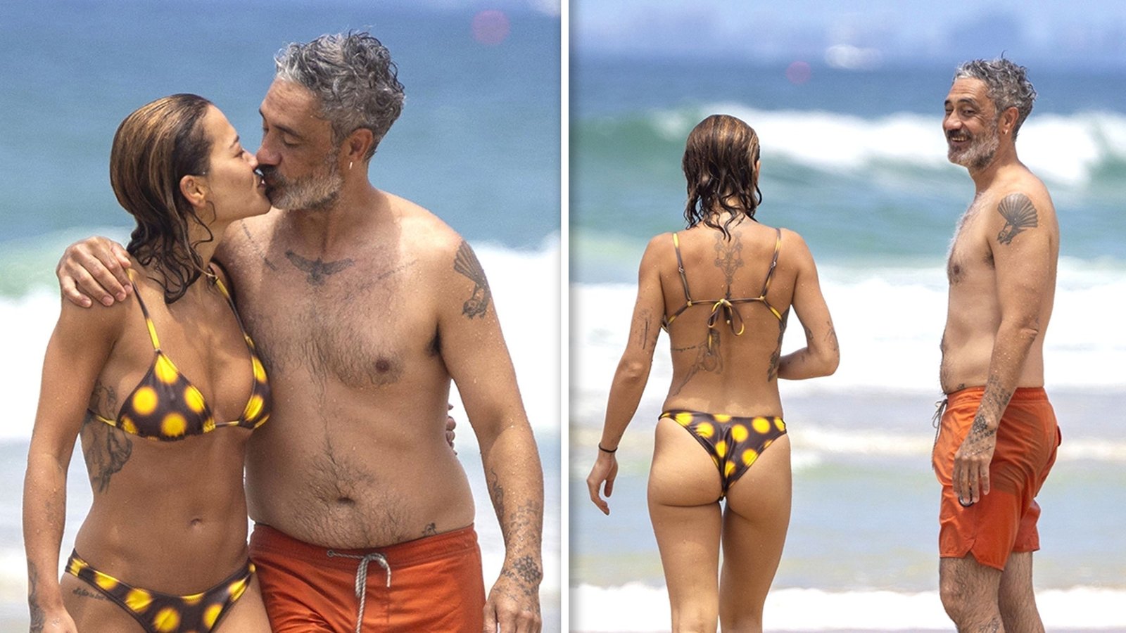 Taika kept it casual in a bright orange swimsuit, so bright, it’s not like Rita will lose her in the crowd.