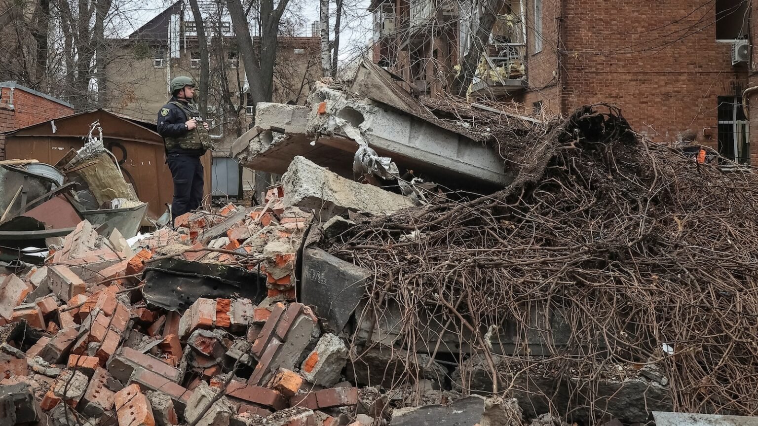 A policeman stands after a Russian missile attack in Kharkiv, Ukraine on November 25, 2024.
