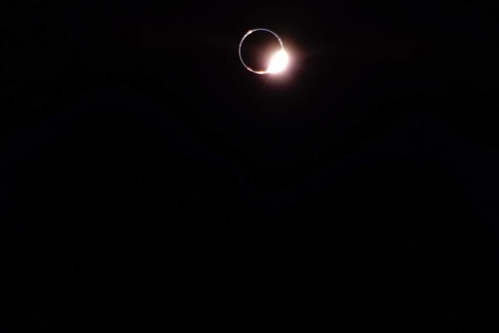 At the top the views of the ghost sun is almost completely ecliped. It gives an amazing view of the earth in an entire sun eclipse when the moon blocks the entire disk of the sun.