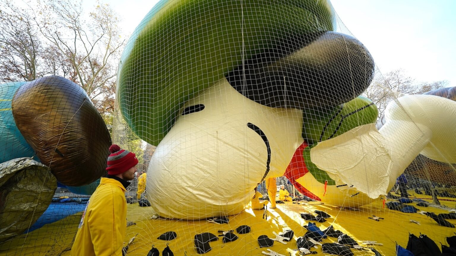 The Beagle Scout Snoopy balloon prepares for the 2024 Macy’s Thanksgiving Day Parade balloon inflation on the eve of the parade in New York, Nov. 27, 2024.