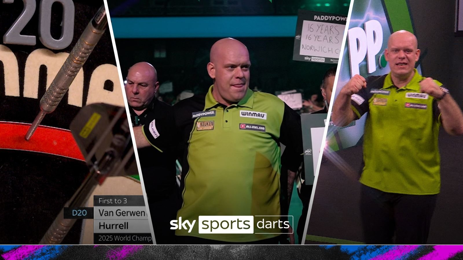Watch Michael van Gerwen’s best moments as he cruises to a 3-0 win against James Hurrell in the first round of the 2025 World Darts Championship.