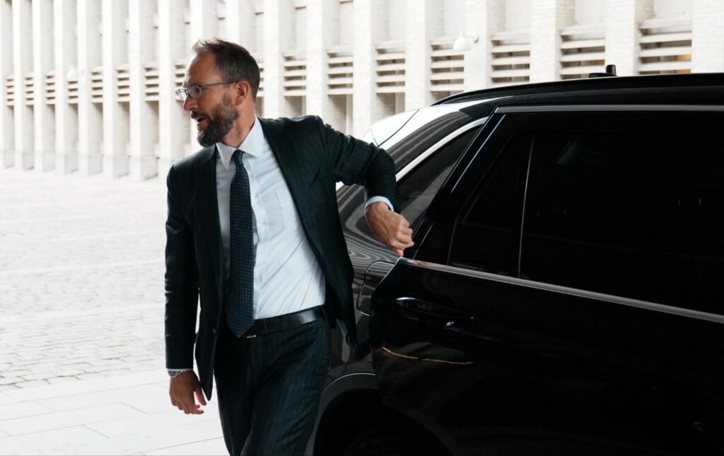 Mark Strikha, American Chargé d’Afires in Denmark, arrives at the Foreign Ministry in Copenhagen on August 27, 2025.