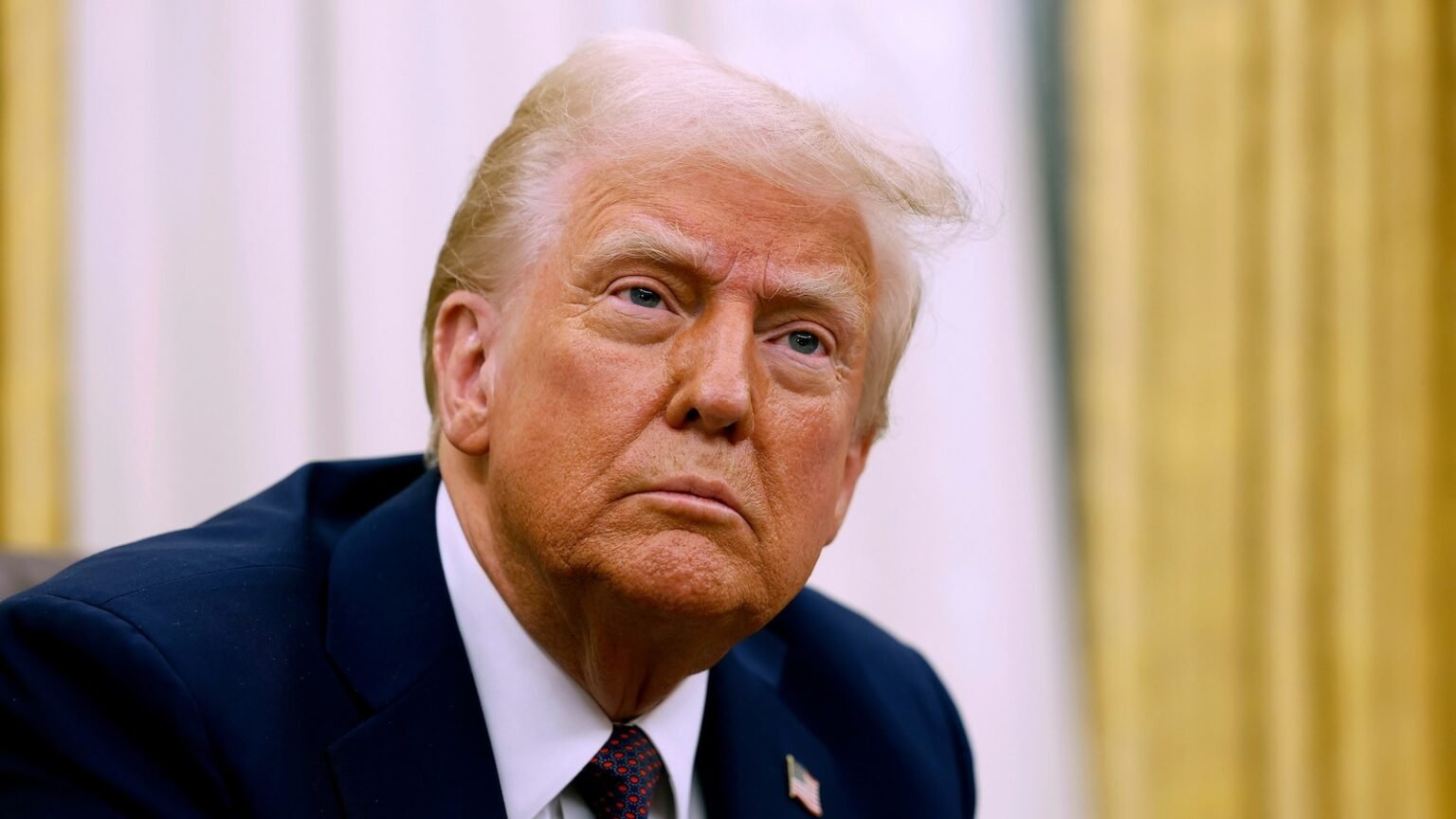 President Donald Trump speaks to reporters after signing executive orders in the White House Office, Jan. 23, 2025, in Washington.