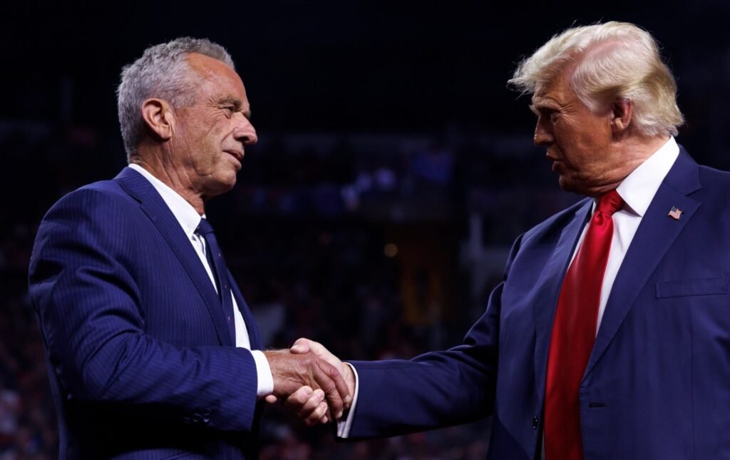 Donald Trump meets Robert F. Kennedy Jr. on stage during the campaign’s Desert Diamond Arena event in Glendale, Arizona on August 23, 2024.