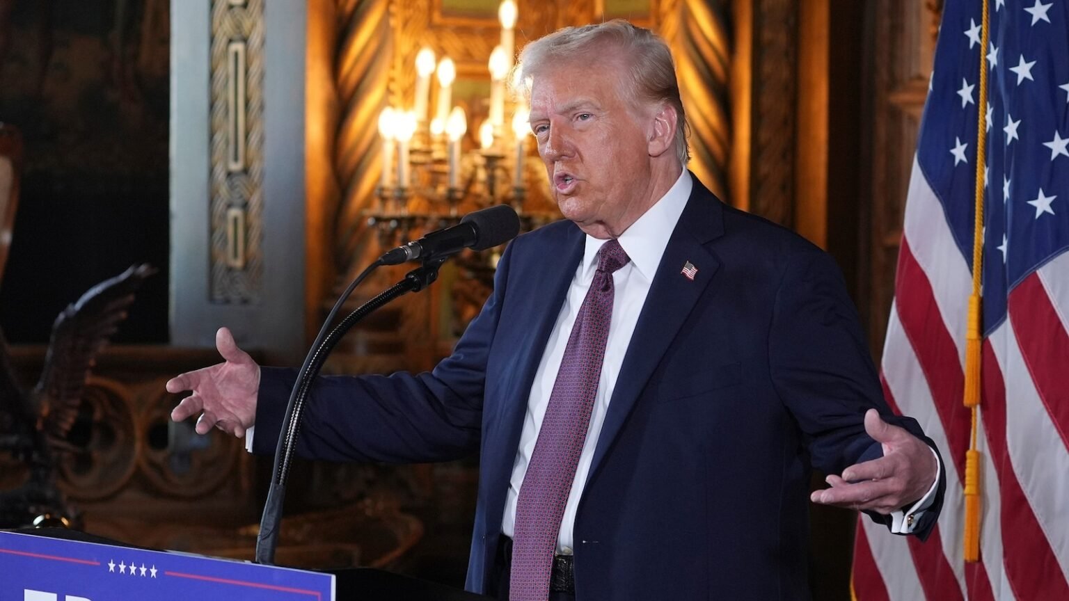 President-elect Donald Trump speaks during a news conference at Mar-a-Lago on January 7, 2024 in Palm Beach, Florida.