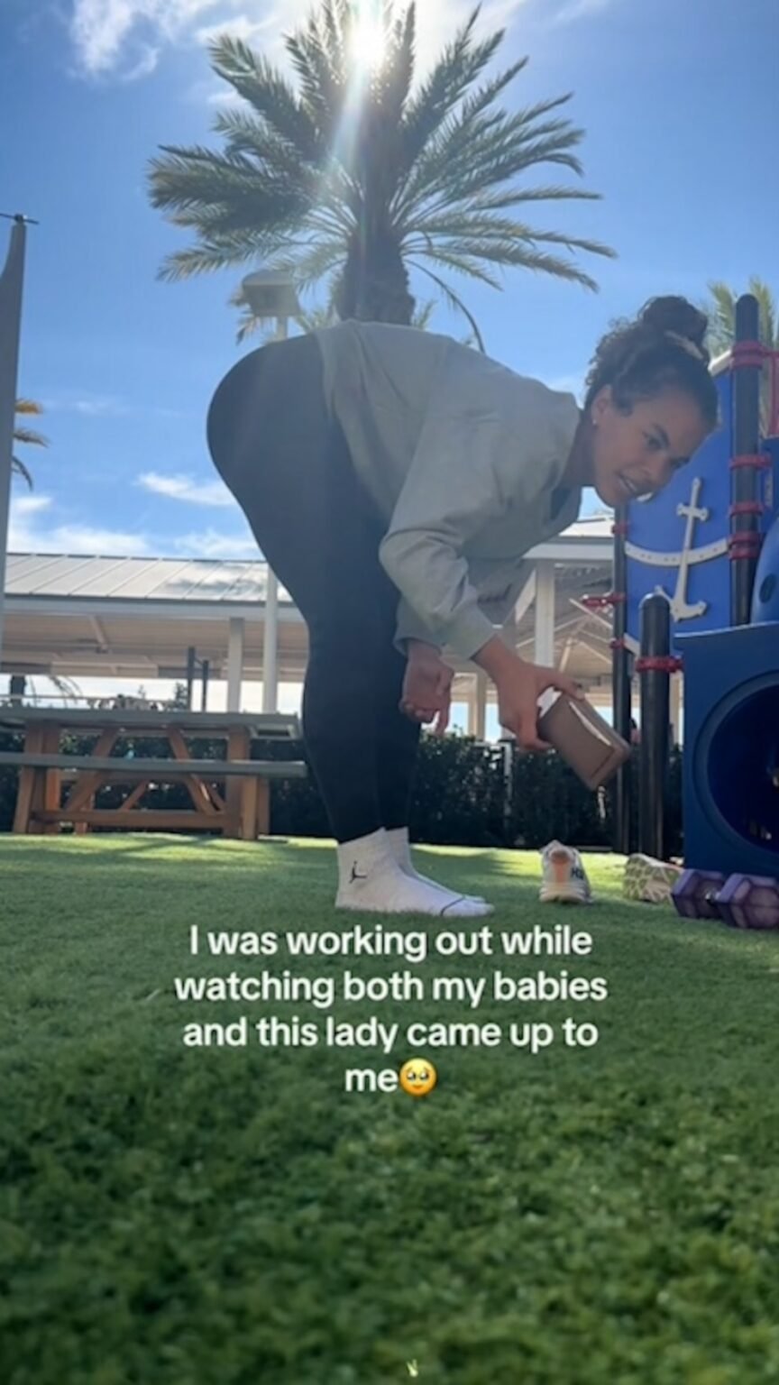 Hailey Hinkley was working out at the gym as she watched her kids on the playground outside. Then another mom went over to give Hinkley his props.