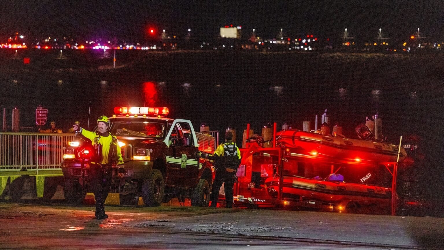 Emergency services work at Gravelly Point, after colliding with a helicopter in Gravelly Point, when he approached Reagan Washington National Airport and fell on the Potomac River, Arlington, 2025. January 29.