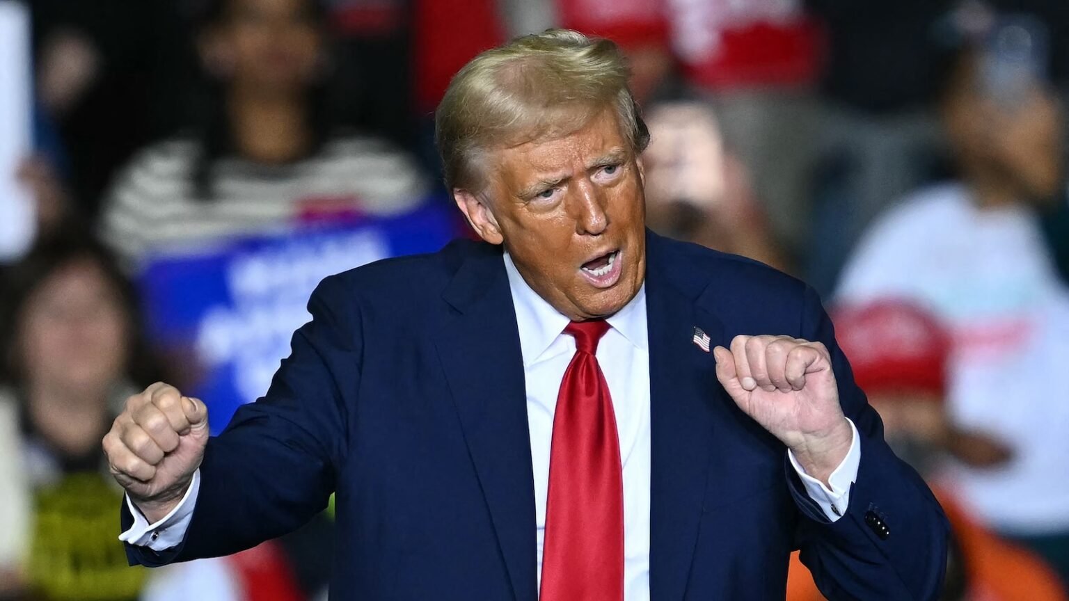 Former President and Republican presidential candidate Donald Trump dances on stage after his speech at a campaign rally in Allentown, Pennsylvania, October 29, 2024.