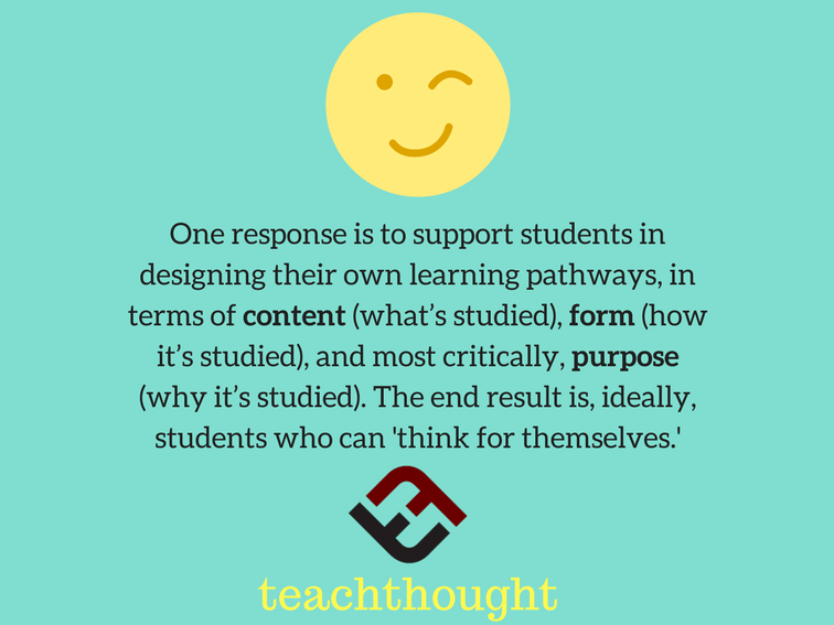 One of the answers is to support students in the design of their own training paths in relation to Content (What is being studied), form (How to study) and most critical, purpose (Why it is studied). The end result is, ideally, students who can “think about themselves”.