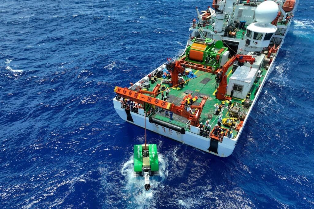 A Chinese deep-sea mining vehicle during a test run in the Pacific Ocean in July 2024